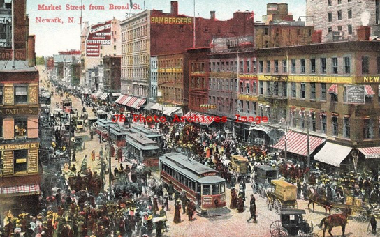 Historic image, Broad & Market, Newark. First intersection in USA to install a traffic light.